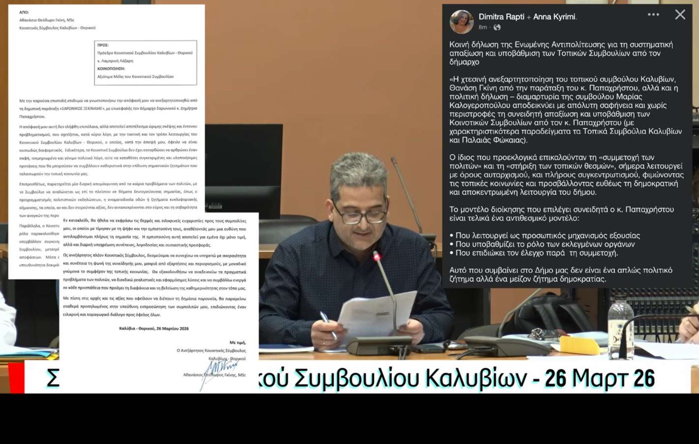 Η ανεξαρτητοποίηση του κοινοτικού συμβούλου Θανάση Γκίνη, η έντονη συζήτηση για το κοιμητήριο Ολύμπου και η ανακοίνωση της ενωμένης αντιπολίτευσης δημιούργησαν ένα νέο, φορτισμένο πεδίο αντιπαράθεσης.