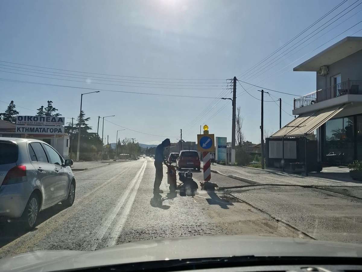 Μια εικόνα που προκαλεί προβληματισμό καταγράφηκε το πρωί στην Κερατέα, σε σημείο όπου εκτελούνται έργα «ανάπλασης». Εργάτης φαίνεται να εργάζεται κυριολεκτικά στη μέση του δρόμου, την ώρα που τα αυτοκίνητα περνούν δίπλα του, με ελάχιστη προειδοποίηση και περιορισμένα μέτρα ασφάλειας.
